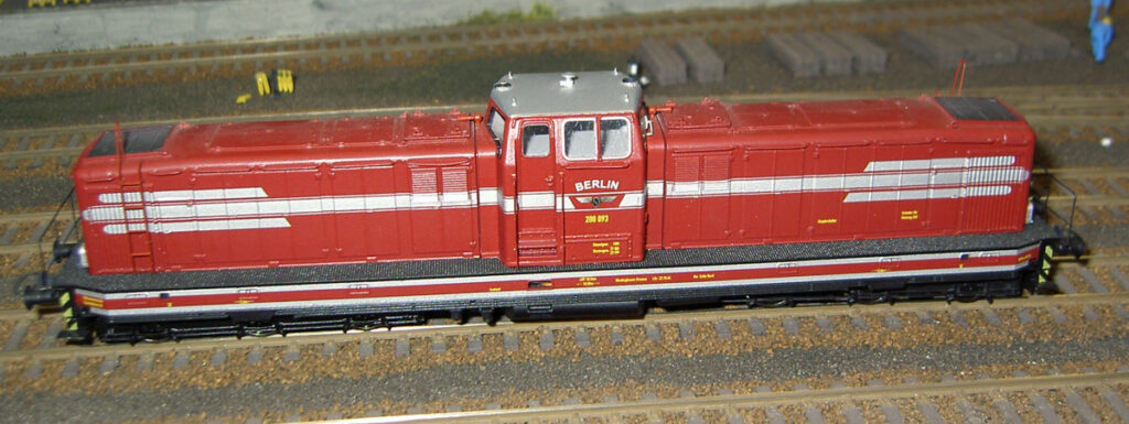 Zudem kam oftmals ein „Rohbau“, soll heißen unvollständig und in „Vollmessingoutfit“, eine von zwei mir bekannten Modellumsetzungen der MaK G1300BB, besser bekannt als V100PA, auf unseren Treffen zum Einsatz.