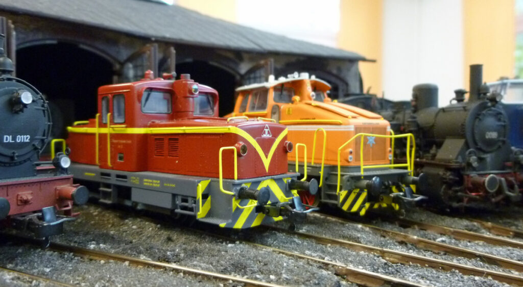 Bei mir hatte das (auch) einen beruflichen Hintergrund. Aber von Anfang an. In meiner frühen modellbahnerischen „Sozialisierungsphase“ kreisten auf der Anlage DB-Fahrzeuge. Zum einen, weil ich es nicht anders kannte, zum anderen gab es außer der „Werkbahnlok“ von Märklin (Henschel DHG 500 in diversen Variationen, im Übrigen bis auf das falsch platzierte obere Spitzenlicht von den Proportionen her sehr gut umgesetzt) keinerlei weitere „Privatbahnloks“. Natürlich gab es nicht nur die recht gut proportionierte und maßstäbliche Henschel von „Tante M.“ aus Göppingen, nein, ich vergaß die gute Tante, quatsch, „Schwarze Anna“ und das O&K-Pummelchen in 1:82 (oder welcher Maßstab das auch immer ist) von den Fleischmännern aus Nürnberg.