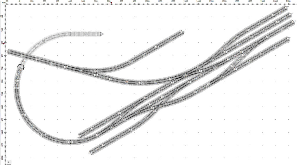 Ein Entwurf von Ivo Cordes, der seinerzeit im Eisenbahn Magazin erschien, beeinflusste meine weiteren Entwicklungen bezüglich des Anlagenplans. So änderte ich die Bahnhofseinfahrt analog Ivos Anregung ab. Ein schöner Nebeneffekt dabei war, dass die Steigung aus dem Schattenbahnhof wesentlich weniger steil daher kam.