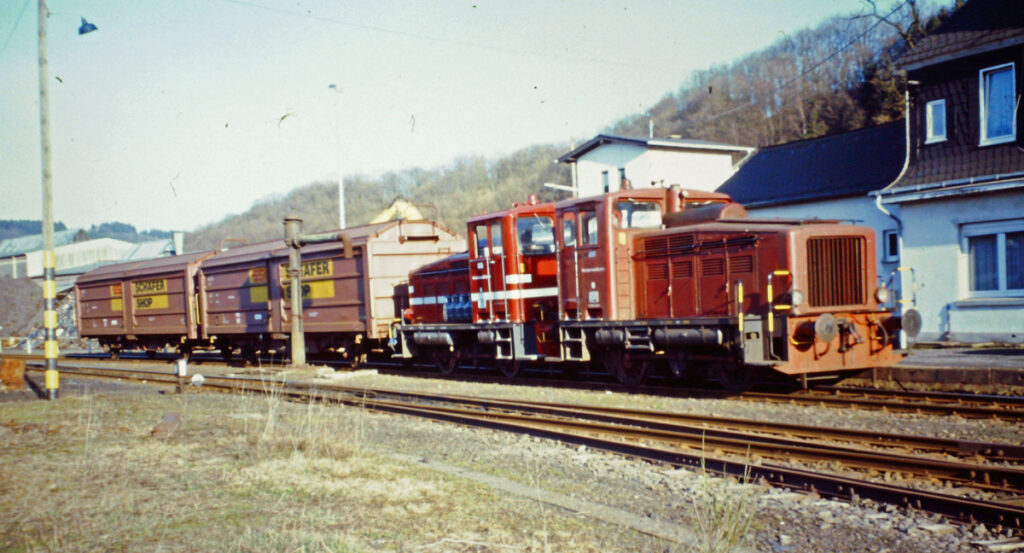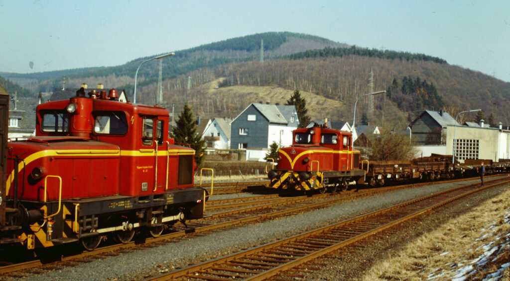 Ähnlich verhielt es sich bei der Westerwaldbahn. Hier lösten vier baugleiche Loks die Dampftraktion ab. Auf den Höhen des Westerwaldes „strampelten“ die kleinen Loks meist solo, oft aber auch als „Westerwaldkrokodil“ Rücken an Rücken gekuppelt anfangs mit Steinladungen, später mit geschlossenen Wagen.
