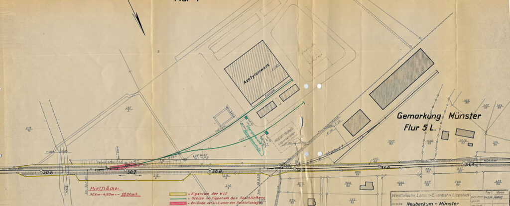 In diesem Jahr wird das Werk in Gremmendorf an die nah vorbei führende WLE – Strecke Münster – Neubeckum angeschlossen.