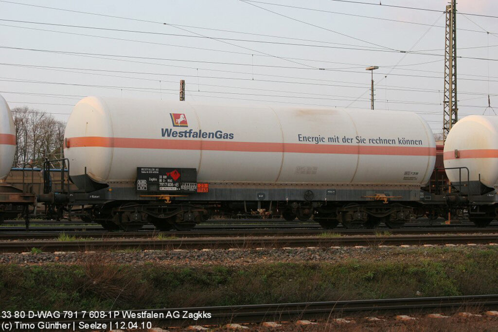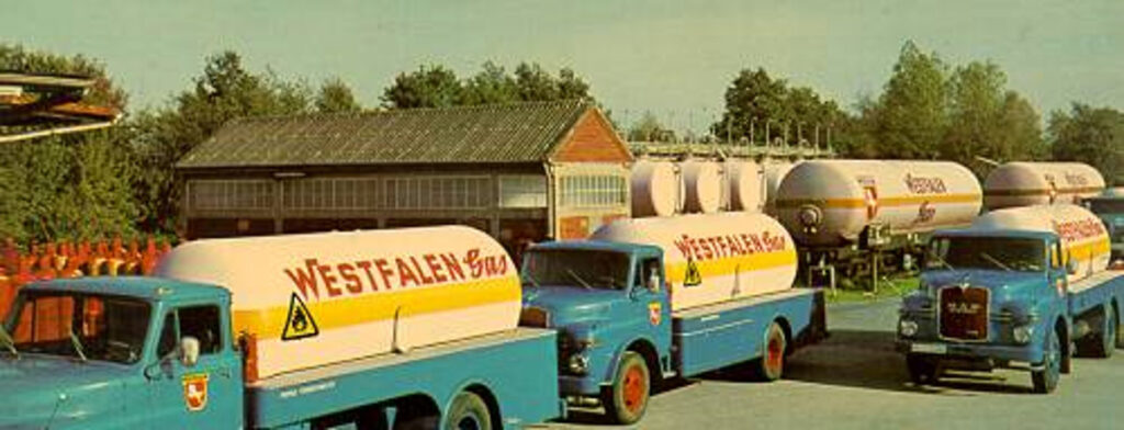 Ein prägendes Merkmal von WestfalenGas sind die eigenen Druckgas Kesselwagen. Bislang sind 30 Wagen bekannt. Aber diese Auflistung beginnt mit Lieferungen der Firma Brünninghaus im Jahr 1968, der obige Wagen gehört zu dieser Serie. Da aber auf den Fotos aus den 1960er Jahren auch schon Wagen in der Privatlackierung zu sehen sind werden es deutlich mehr sein.
