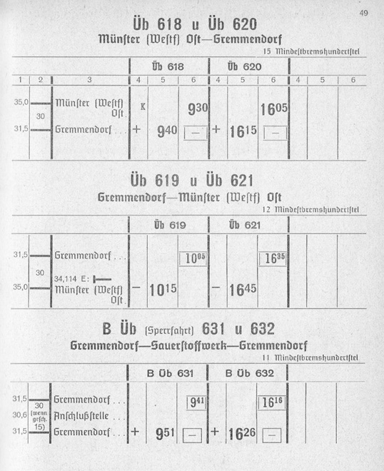Im Buchfahrplan von 1963 sind die zwei Fahrten täglich von Münster zum Sauerstoffwerk verzeichnet. Zwischen den Sperrfahrten und der Rückfahrt nach Münster wurden in Gremmendorf die leeren Wagen umfahren.
