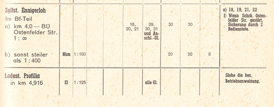 Auszug aus dem Buchfahrplan 1967. Die Ladestelle in km 4,916 dienste der Anlieferung von Holz und ist auch im Gleisplan oben enthalten. Leider ist die „bes. Betriebsanweisung“ nicht überliefert. (Sammlung Riegel)