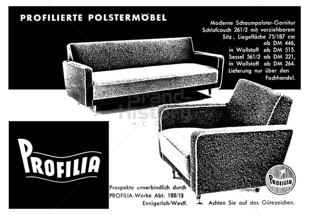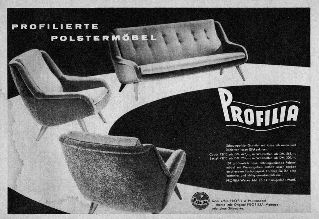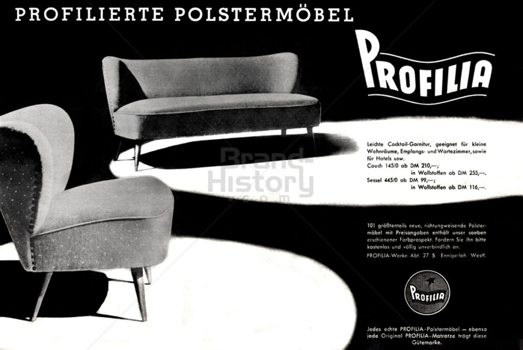 In die Wirtschaftswunderzeit ab 1949 fiel auch die Gründung eines großen Möbelherstellers im Münsterland. In Ennigerloh, zwischen Beckum und Warendorf, wurden Polstermöbel gebaut, die dem damaligen Zeitgeist entsprachen. Der Verkauf fand über die damals zahlreichen Möbelhäuser bundesweit, aber auch über den aufkommenden Versandhandel von Neckermann und Quelle statt. Alle Teile wurden im Werk hergestellt, vom Holzrahmen und den Füßen über die Polsterung bis zum Nähen des Bezuges. Das Werk wurde ständig erweitert und neue Standorte hinzugekauft, so z. Bsp. 1955 in Warendorf. Bis in die 1980er Jahre wurde Profilia mit Zweigwerken in Warendorf, Wiedenbrück, Oberhausen und Berlin zum größten Arbeitgeber in Ennigerloh mit über 2000 Mitarbeitenden vor Ort.