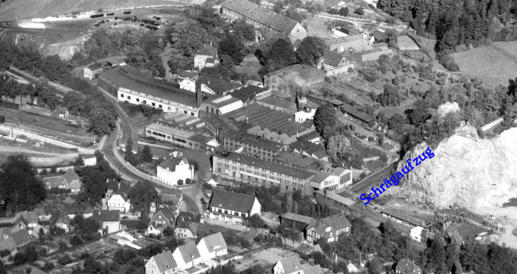 Die Lösung wurde schließlich in einer seltenen Konstruktion gefunden: einem Wagenaufzug. Im Vergleich zum Plan von 1928 wurde die Straße nach Suttrop verlegt, aber die Grundstücksgrenzen blieben erhalten.