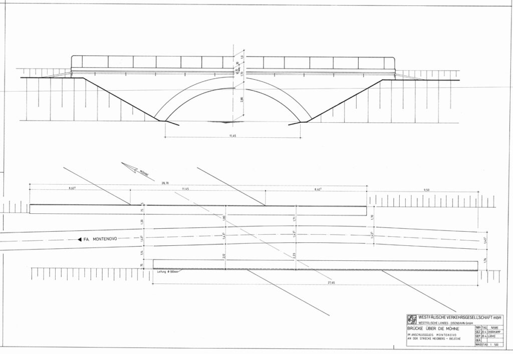 An der Ausführung der Brücke über die Möhne in moderner Betonbauweise läst sich ersehen, das dieser Anschluß für große Achslasten gebaut worden ist.
