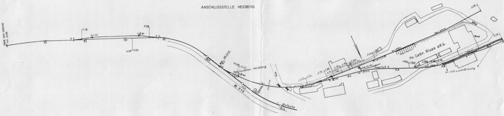Vom 6. Oktober 1975 an wurde die Strecke zwischen Heidberg und Brilon stillgelegt. Um den Kunden in Heidberg weiter bedienen zu können mußte eine Umsetzmöglichkeit am Streckengleis geschaffen werden. Diese wurde 1979 gebaut.