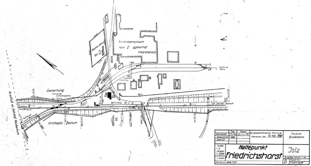 In der Nähe dieses Haltepunktes wurde ein Abzweig als Ausweichanschlußstelle zur Anlieferung geplant und gebaut.