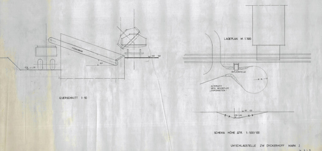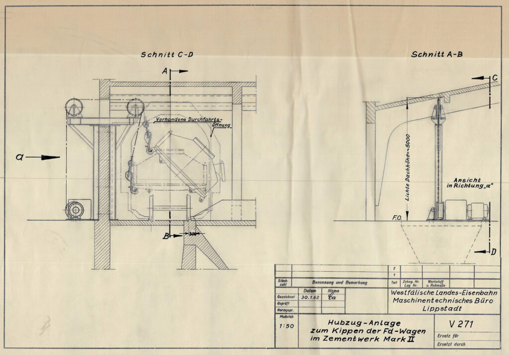 Eine Anlieferung von Steinen aus Warstein war auch für dieses Werk nicht einfach zu realisieren. Der Brecher lag günstig für die eigenen Steinbrüche östlich des Werks, fernab der vorhandenen normalspurigen Gleisanlagen. Es wurden in den Jahren seit Einführung der Omi und Fd Wagen einige Ideen in Zeichnungen umgesetzt, aber nicht verwirklicht.