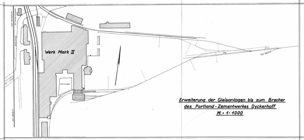 Durch die Neubaupläne ergaben sich auch neue Ansätze für die Steinanlieferung. Es war geplant täglich bis zu 6 Vollzüge von Warstein zum Werk zu bringen (siehe Steinzüge). Dafür waren die bisherigen Planungen ungeeignet.