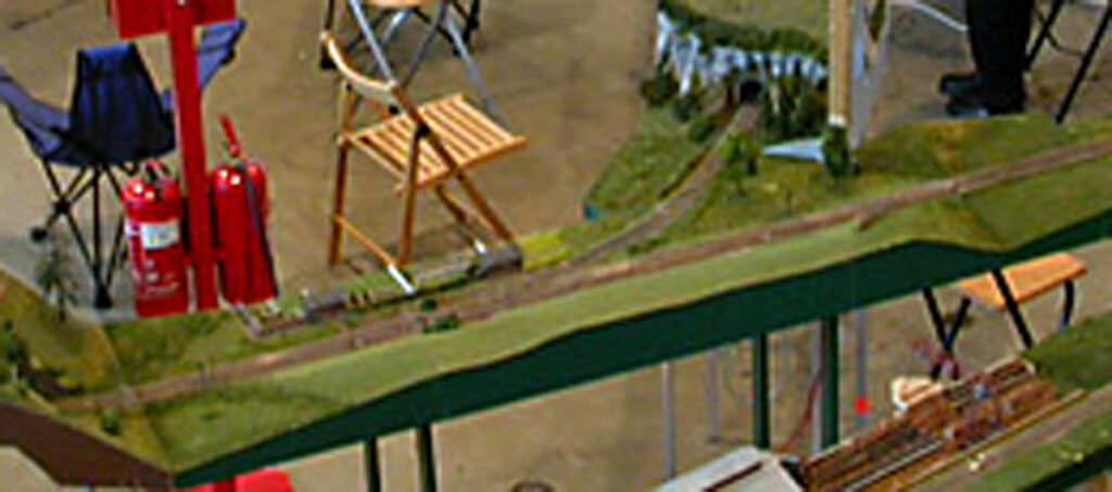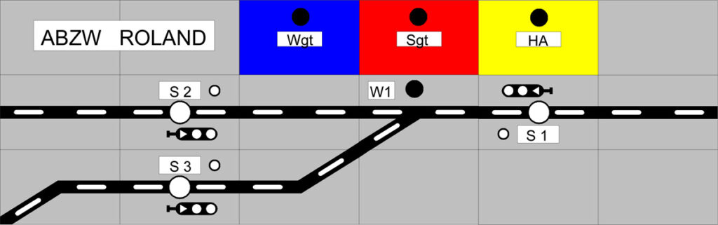 Die kleine Gruppe der Privatbahnfreunde im FREMO hatte sich um die Jahrtausendwende das Projekt des Abzweiges Roland als Aufgabe gestellt. Diese wurde in freundlicher Teamarbeit erledigt. Ralf erstellte die Modulkästen und war für den Gleisbau zuständig. Das Konzept und die Landschaft kam von mir. Stefan entwickelte und baute die Fernstelltechnik. Die Stellbefehle wurden über das Loconet übertragen, so dass der Abzweig unabhängig vom Einbauort im Arrangement von andere Stelle, z. Bsp. dem Zugleiter, bedient werden konnte.