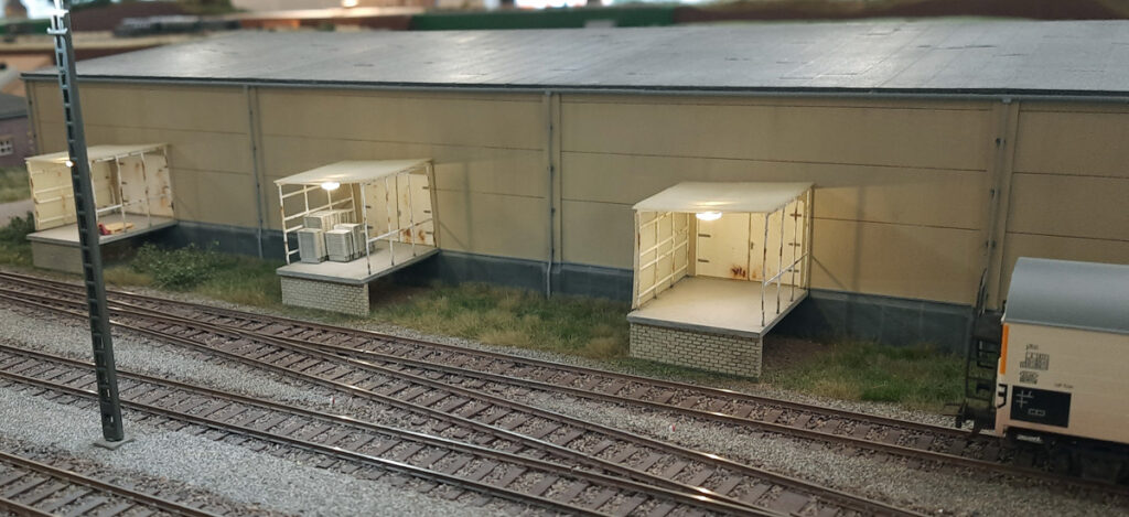 Drei Tore im Lagergebäude, die Laderampen wettergeschützt.