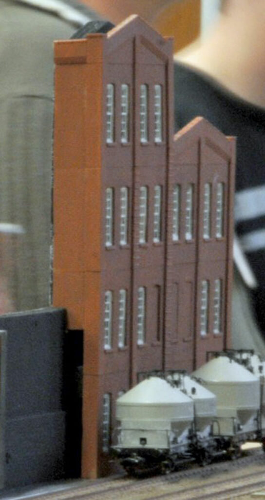 Ein langes Anschlussgleis, gleich vorn an der Modulkante, musste sehr bald mit einer Absturzsicherung (Brett) ausgerüstet werden. Für die 130 cm Modellänge wurden viele Möglichkeiten überlegt. Auf jeden Fall sollte auch ein Obstlager und ein Lebensmittelgroßhändler dabei sein. Längere Zeit war auch eine Zwieback Bäckerei (wie Trüller in Celle) angesagt. Aber nach dem sich einige Änderungen bei anderen Anschließern in Lippertor (Rothe Erde) abzeichneten, sollte es eine Weizenmühle sein. Was lag näher als sie nach einem guten Geschäftspartner zu benennen, Marke Käthchengold in Heilbronn.