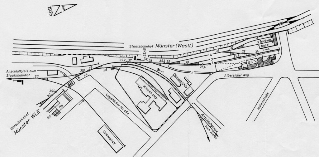 So wurde ein Personenbahnhof für die WLE an der Kreuzung Hafenstraße / Albersloher Weg mit gleichem, nur gespiegeltem Gleisplan vorgesehen. Einige Straßen mussten in Teilen verlegt werden, aber so konnten schließlich die Pläne genehmigt und umgesetzt werden.