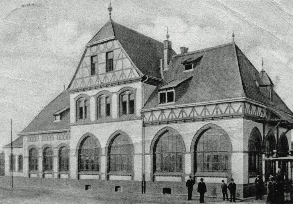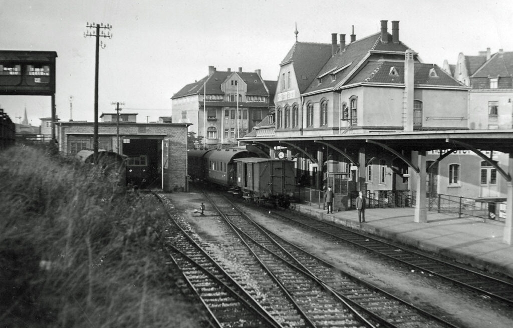 Ein kleiner Endbahnhof einer Privatbahn in der großen Provinzialhauptstadt. Keine Hintergrundkulisse ist nötig durch den Damm zur Reichsbahn. Ein Vorbild für „Holstedt – Kleinbahnhof“?