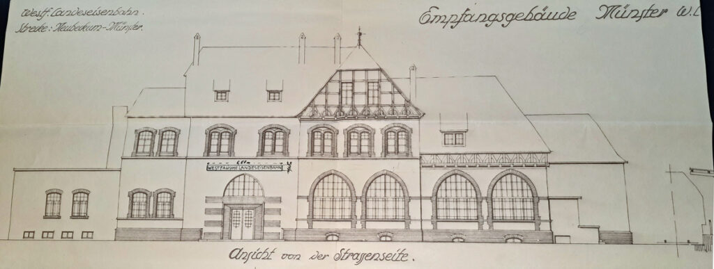 Einen Hauptbahnhof gab es in der Stadt Münster erst seit dem 1. Oktober 1890. Dieser entstand durch die Zusammen- und Höherlegung der bisherigen Bahnhöfe aus der vor-Staatsbahnzeit.