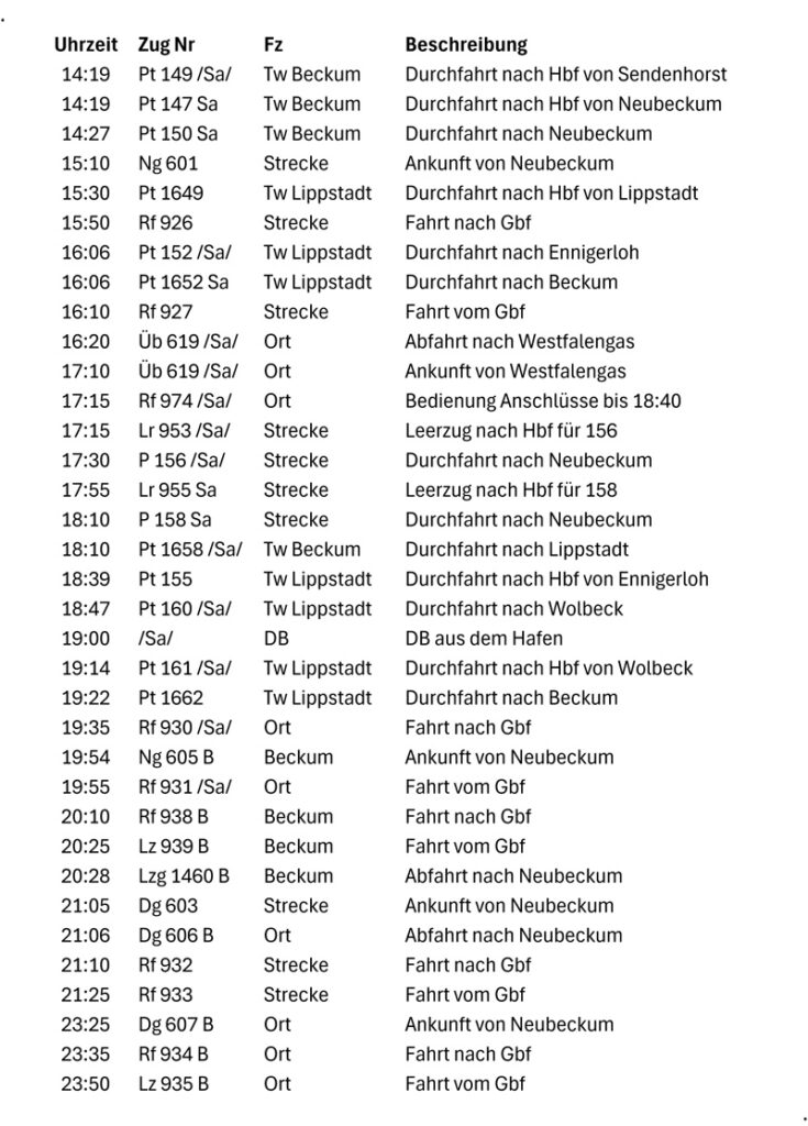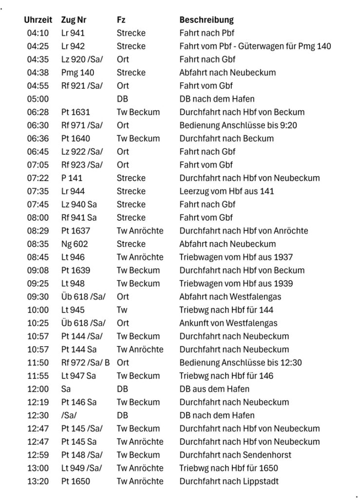 Die Fahrten durch den Bezirk des Stellwerks am Nachmittag nach dem Buchfahrplan Sommer 1967