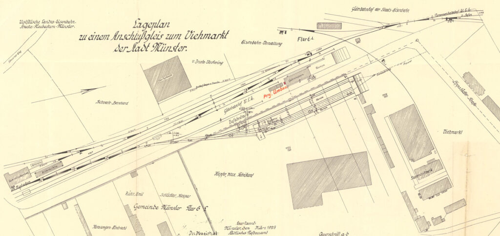 Ab 1922 wurde das abgeräumte Gelände von einer Genossenschaft für den „Westfälischen Zuchtviehmarkt“ verwendet. Es wurden Auktionshallen errichtet und ein Anschluß an den Bahnhof der WLE hergestellt. Dieser Gleisanschluß wurde mit Viehrampen für 108.000 Reichsmark von der Genossenschaft bezahlt.