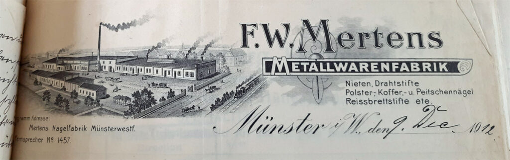 1920 werden zwischen Mertens und der WLE direkte Zustellung von Stückgutwagen an den Anschluß vereinbart, Rohstoffe werden entladen, Fertigprodukte verladen.