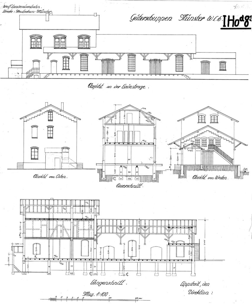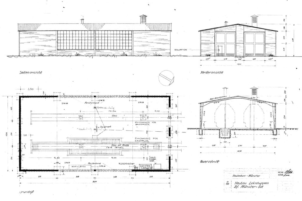 Der ursprüngliche Lokschuppen in Münster Ost wurde im Krieg zerstört, Fotos von ihm sind bislang nicht bekannt. So stand ab 1944 den Münsteraner Loks nur der Triebwagenschuppen im alten Personenbahnhof zur Verfügung. Erst 1964 wurde der neue Schuppen an der alten Stelle fertiggestellt.