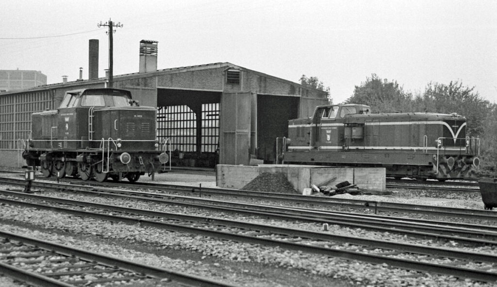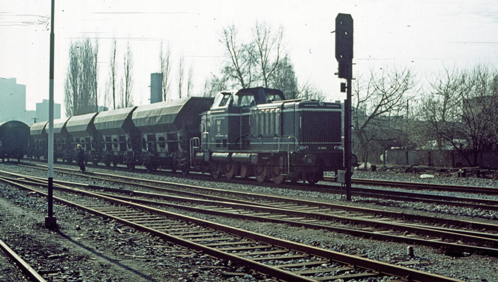 Aber eigentlich waren seit 1956 die „kleinen MaK“ der 600 PS Reihe die für Münster vorgesehenen Ortsloks. Und nach der Ausmusterung der letzten eigenen Dampfloks 1970 mußten von anderen Bahnen Maschinen aushelfen wenn Bedarf war. So auch vom 30. September 1972 bis zum 15. August 1973 die V 22 der Köln-Bonner-Eisenbahn (KBE).