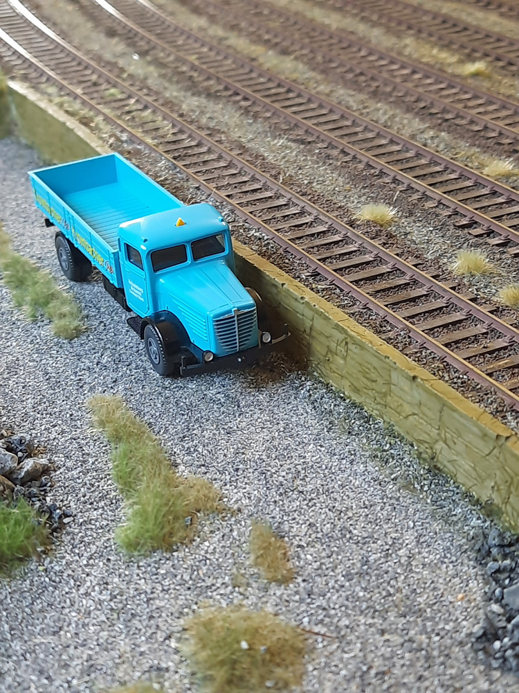 An Gleis 25 befindet sich die Kippstelle für Omi Wagen nach dem Vorbild von Neubeckum Übergabebahnhof der WLE (siehe Beitrag Mark I unter „Steine“). Am Ende von diesem Gleis hat die Bahnmeisterei ihr Lager.